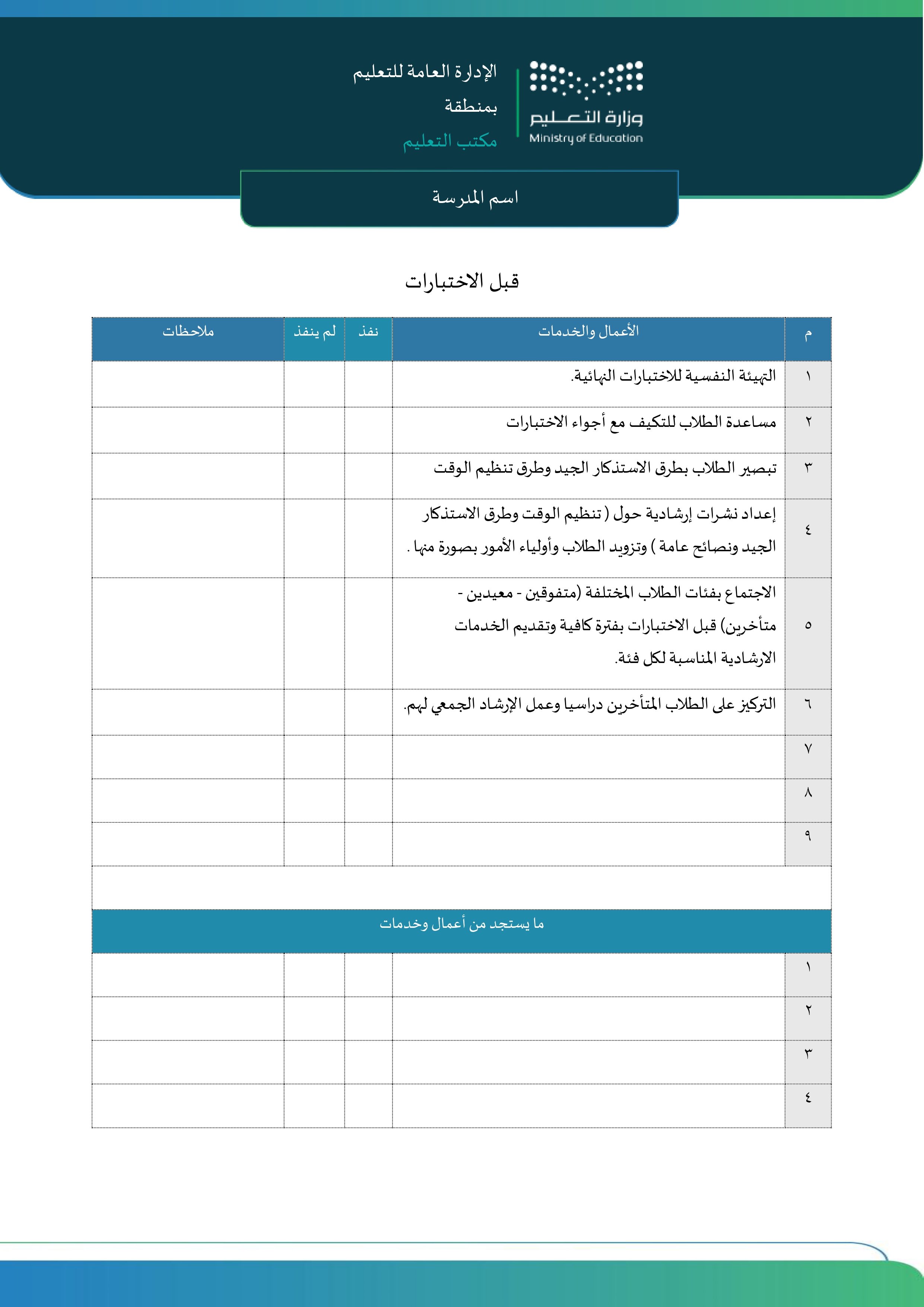 خطة أعمال الموجه الطلابي للاختبارات النهائية 1447هـ